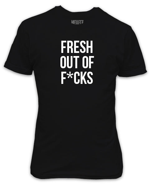 Unleash your carefree attitude with our Fresh out of Fcks Black T-Shirt. Made from high-quality materials, this shirt will keep you comfortable while making a statement. Perfect for any occasion when you just don't give a fck.